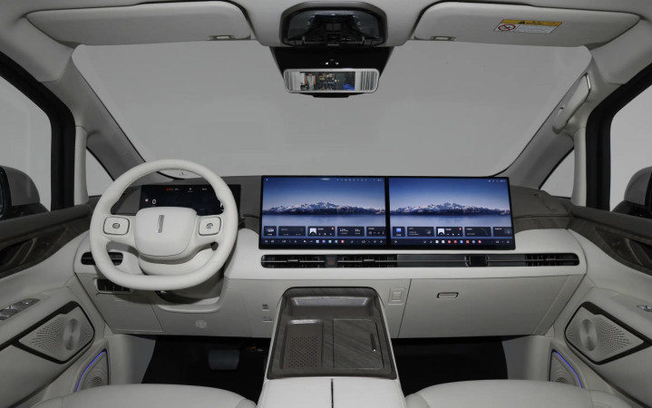 然后我们再来看一下这款车辆中的一些科技感配置,中控屏的尺寸是15.6英寸,副驾驶屏幕尺寸同样也是15.6英寸,这两大屏幕能够形成比较大气的设计。大家可以利用中控屏来了解到导航的信息,在副驾驶上可以利用屏幕去进行娱乐操作,丰富大家在车内的生活。而且通过中控屏,大家可以感受到比较智能化的人车交互过程,比如说大家可以通过手机互联映射的技术,直接将手机上面的信息显示在车载屏幕上面,包括导航或者是音乐以及其他的一些实时数据等,在影音娱乐配置方面的科技感同样也是拉满的,比如说在这款车辆中是带有23个扬声器,所打造出的是一种非常立体的声音效果,后排屏幕尺寸是17.3英寸,看上去也是非常大气的,而且是支持杜比全景声,大家可以利用后排屏幕,然后去切换音乐,感受一下非常丰富的车内娱乐生活。而且在座椅上也带有扬声器,如果是大家想要进行私密性的拨打电话,那么就可以通过座椅的扬声器进行,或者是大家也可以躺在座椅上聆听美妙动听的声音。